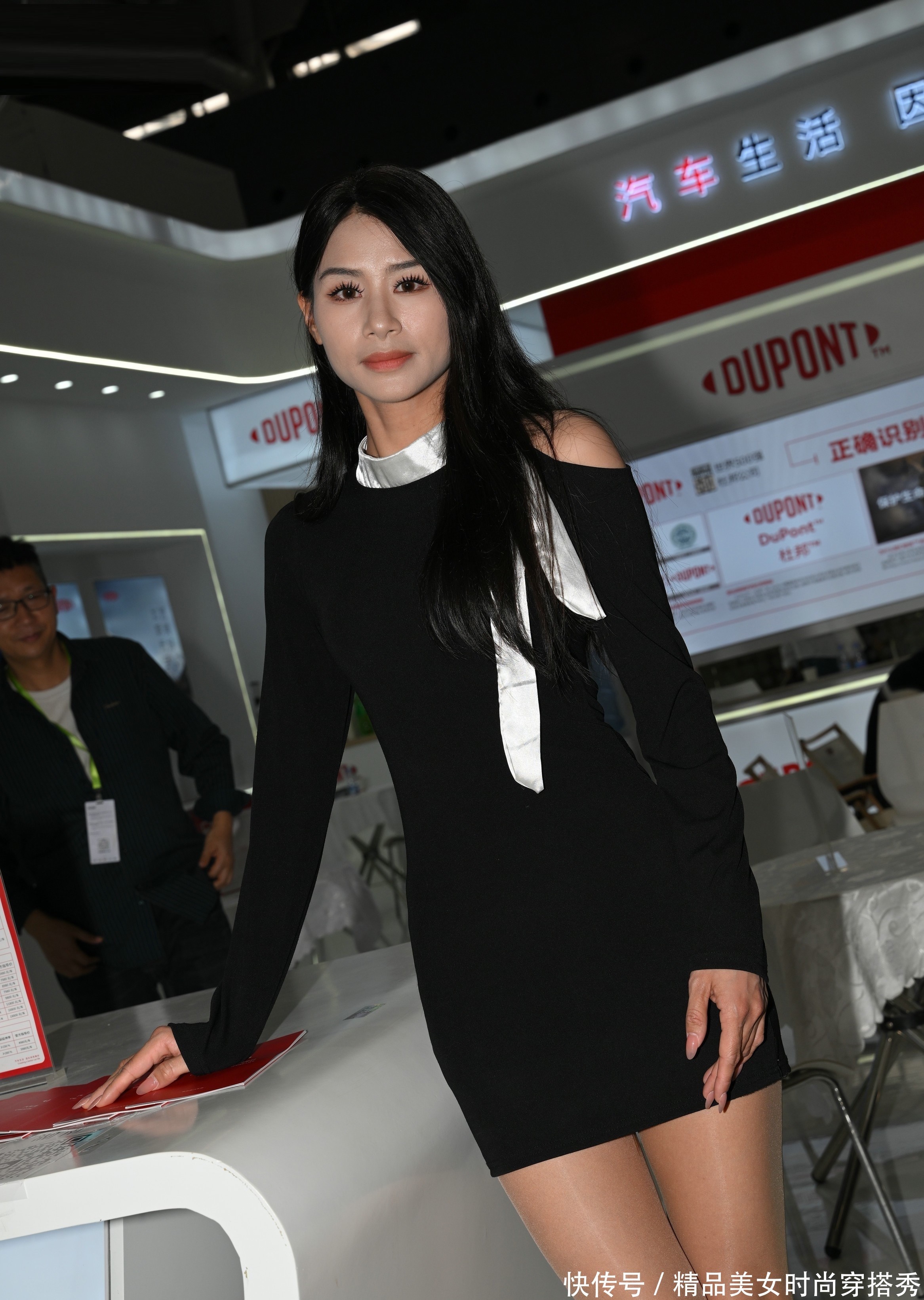 在本次车展的喧嚣中,杜邦展台以其独特的魅力成为了全场瞩目的焦点,而其中一位身着黑色露肩连衣裙的礼仪小姐更是以其优雅与美丽,吸引了无数目光的驻足。